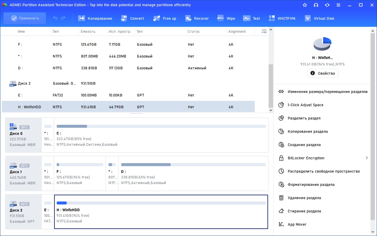 Редактор разделов жесткого диска AOMEI Partition Assistant Technician Edition 10.10.1 by FC Portables