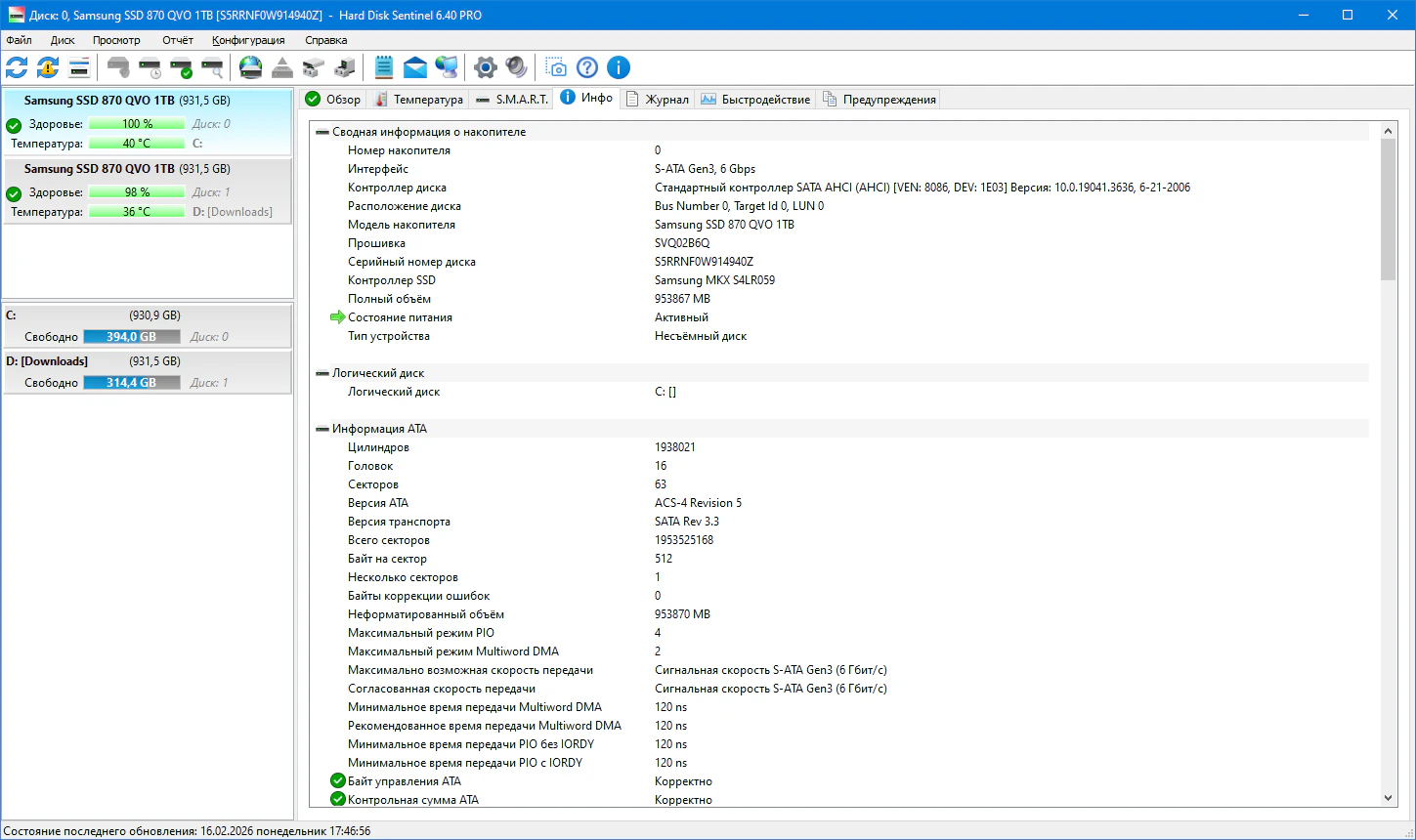 Контроль состояния жестких дисков Hard Disk Sentinel PRO 6.40 Build 13782 + Portable