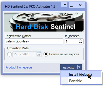 • В случае портативной программы: распаковать архив, скопировать в папку портавной версии активатор, набрать желаемое имя и дальше: