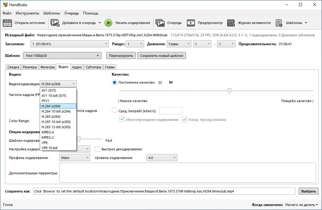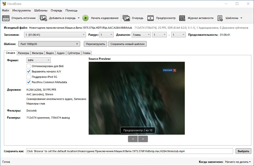 HandBrake бесплатный конвертер видео 1.11.0 + Portable