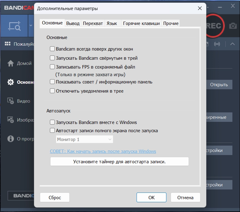 • Дополнительно: подхват файла настроек BANDICAM.reg.