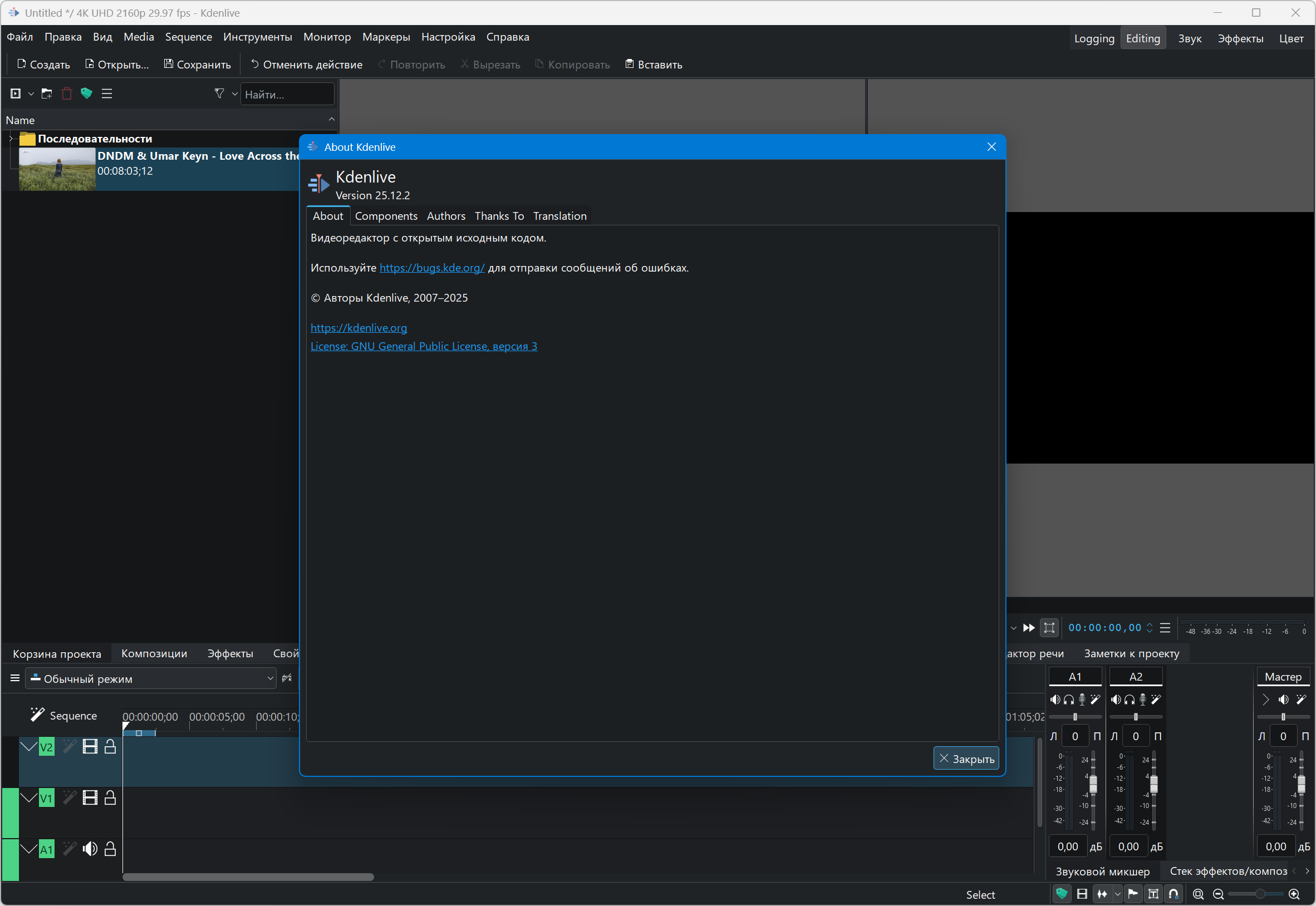 Редактор видео Kdenlive 25.12.2 + Standalone