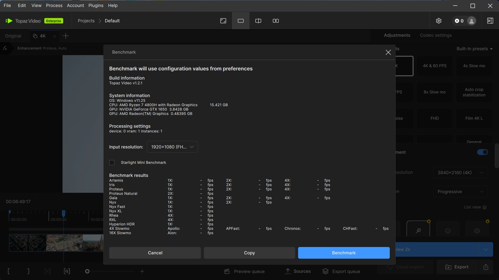 • После скачивания Starlight Mini закрыть Topaz Video AI,