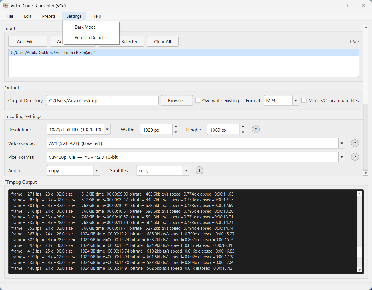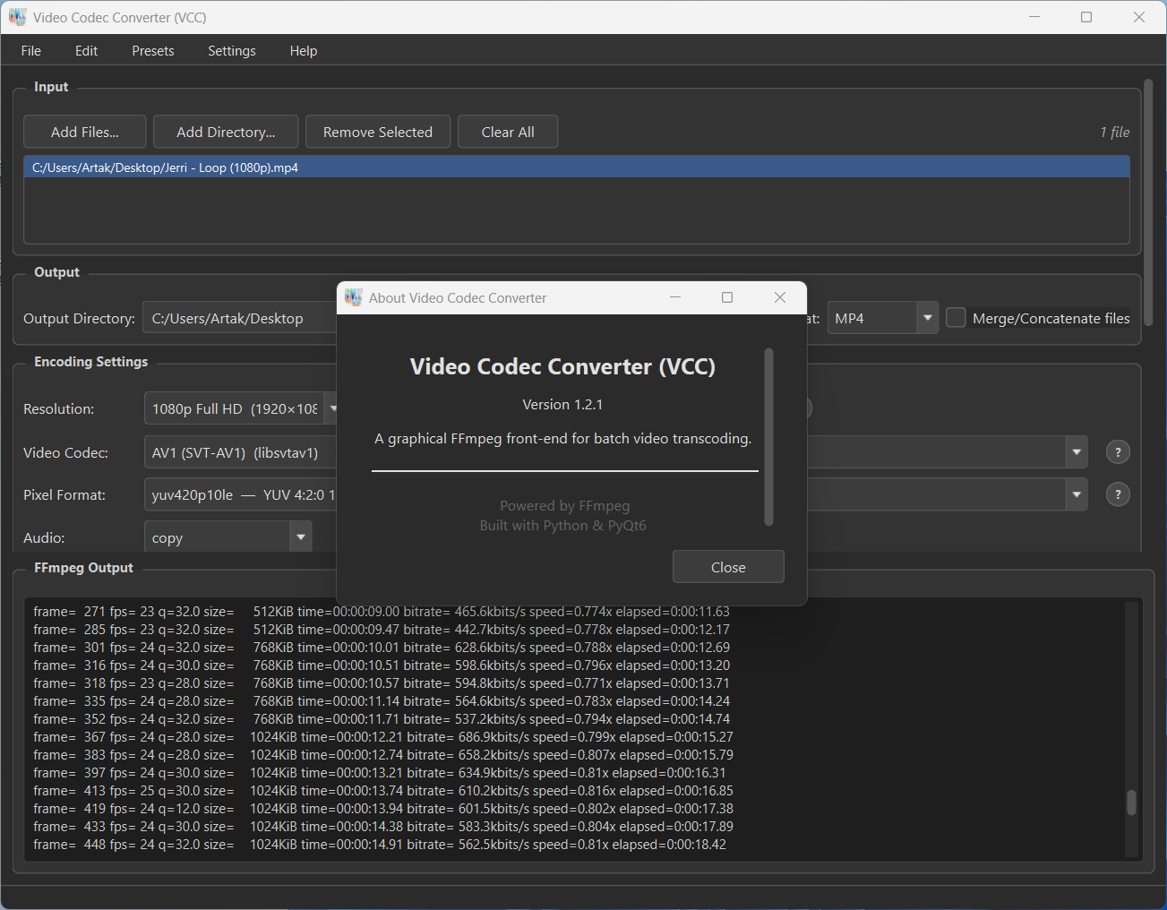 Настольное приложение с графическим интерфейсом пользователя для пакетного преобразования видео с использованием FFmpeg . VCC предоставляет удобный интерфейс для конвертации видеофайлов между популярными кодеками с полным контролем над параметрами кодирования.