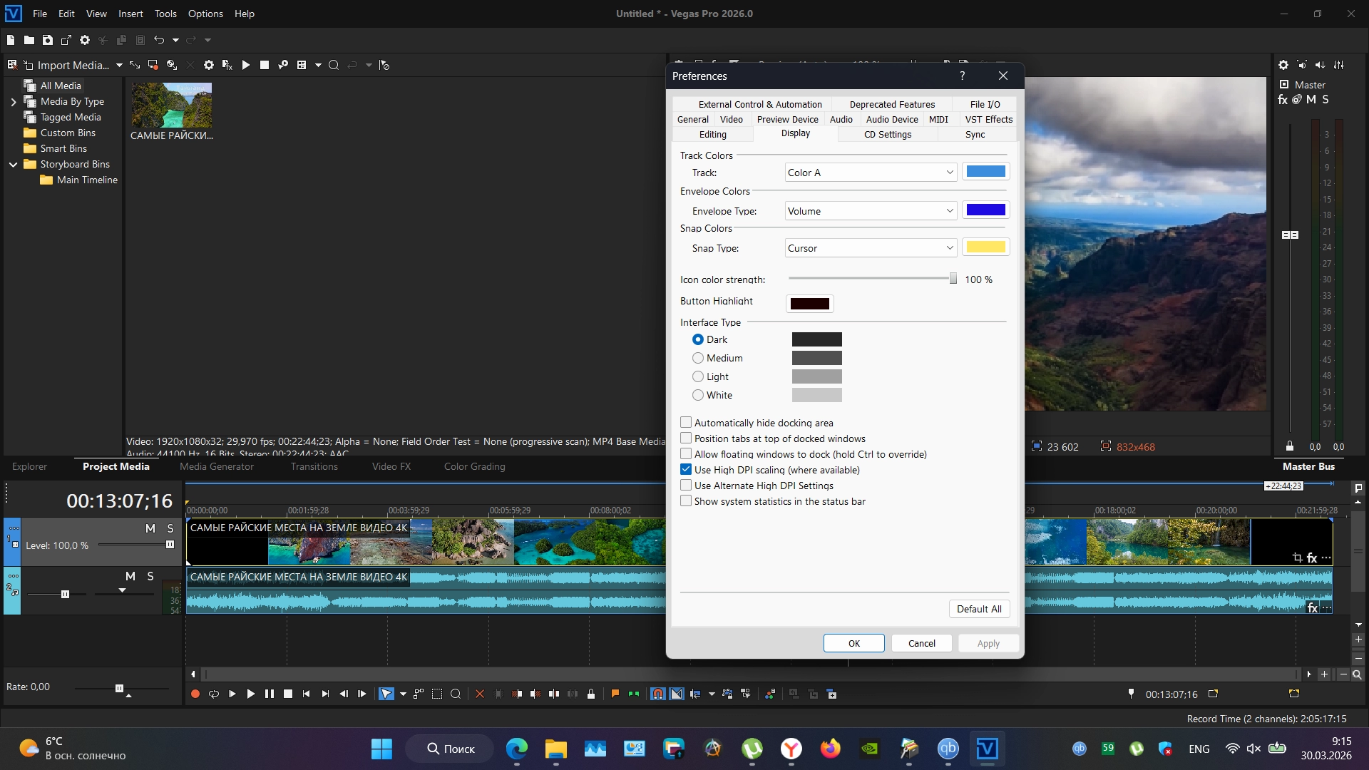 VEGAS Pro предоставляет вам чистое, сфокусированное рабочее пространство с продуманным дизайном пользовательского интерфейса, который помогает вам полностью сосредоточиться.
