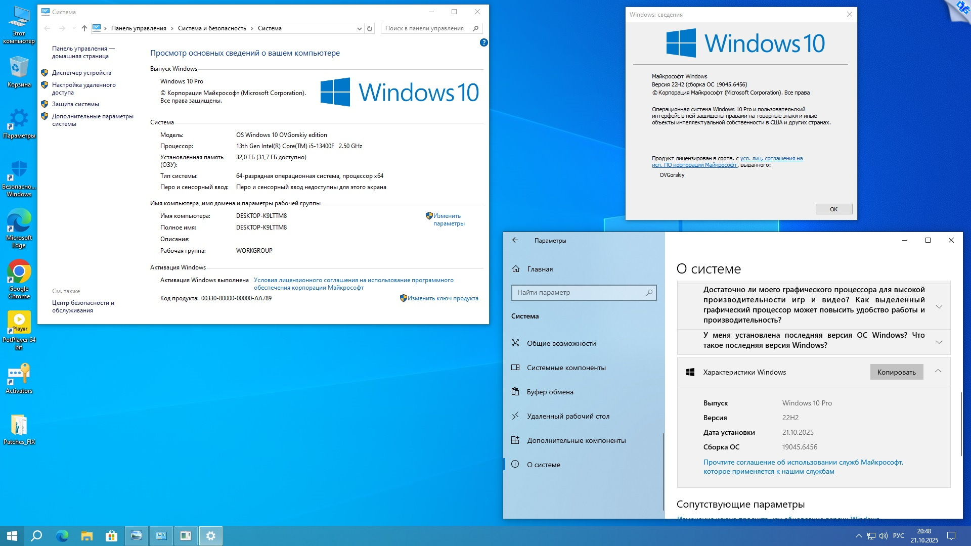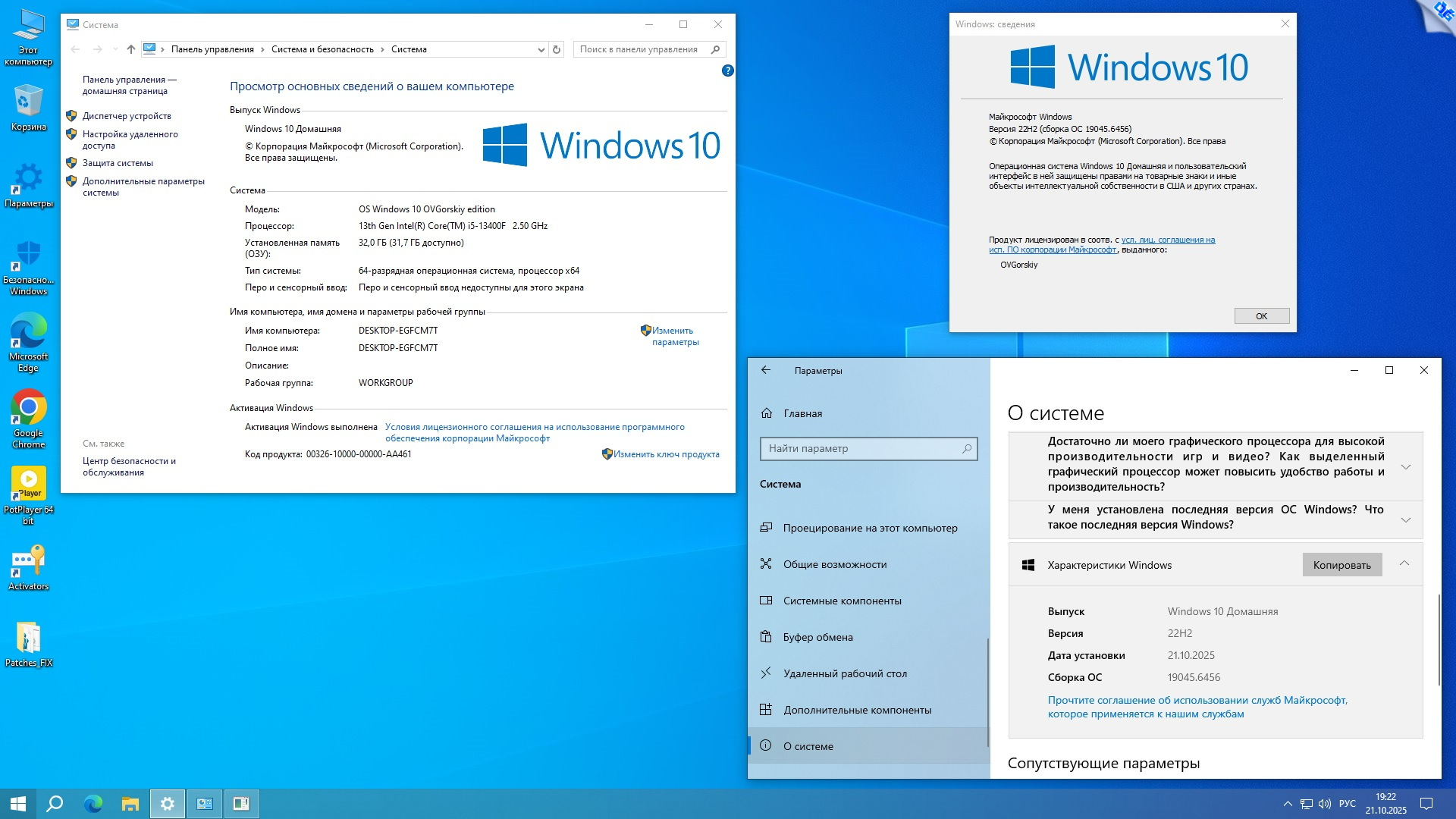 Windows 10 Pro-Home Optim Plus x64 22H2 by OVGorskiy 10.2025 торрент, изменения: