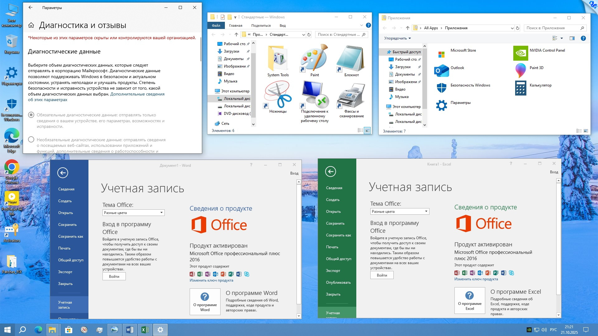 • Компоненты Office 2016 - Word, Excel, PowerPoint и Outlook;