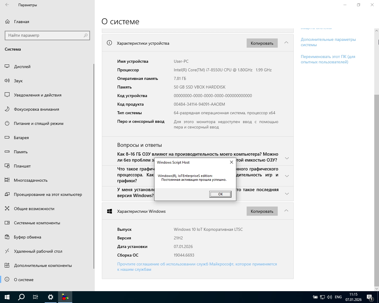 21H2 64-х битная ОС Windows 10 [LTSC] Корпоративная IoT LTSC 2021 (не имеет "магазина" по умолчанию).