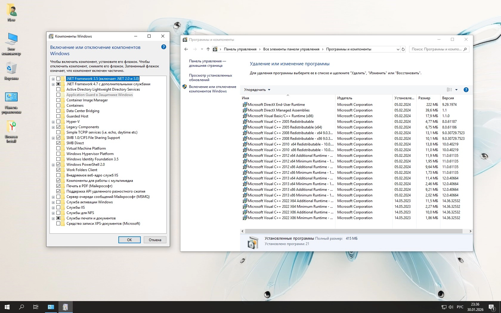 • В Компонентах дополнительно включены SMB 1.0 и DirectPlaty. Встроен Фреймворк 4.8, т.к. по умолчанию в LTSC 1809 - Фреймворк 4.7. Кроме того, применен твик использования новой версии Фреймворка - вместо устаревшей версии 3.5.