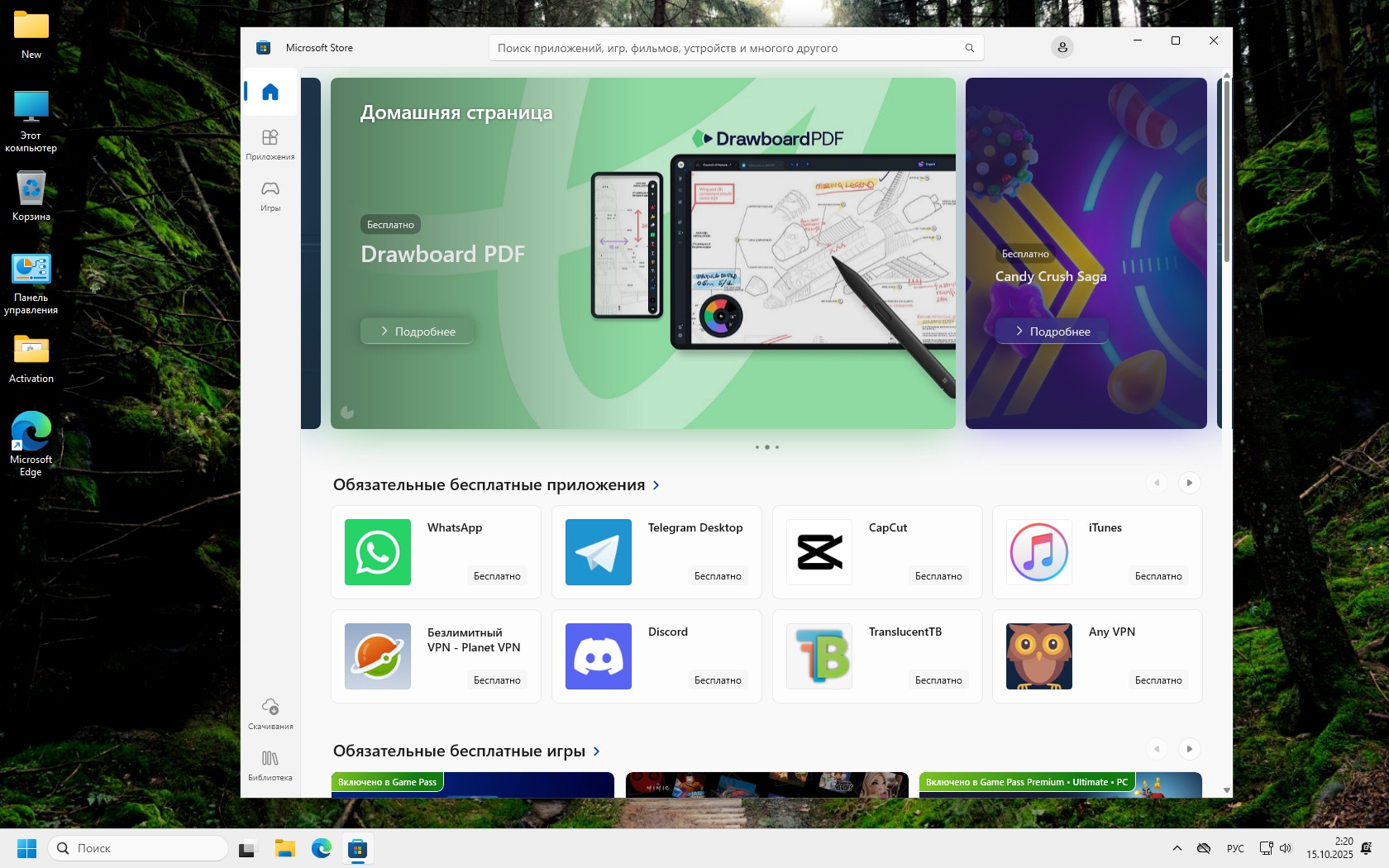 • Сохранились все штатные компоненты, драйверы, магазин, Edge и Defender — чтобы не было проблем с обновлениями, сертификатами и активацией игр.