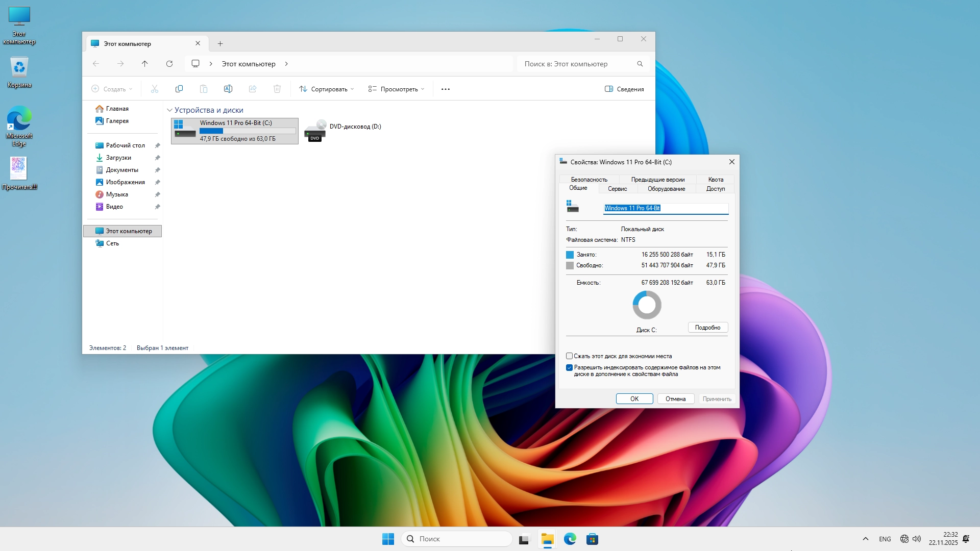 • Изменение имени диска "C" на "Windows 11 Pro 64-Bit"