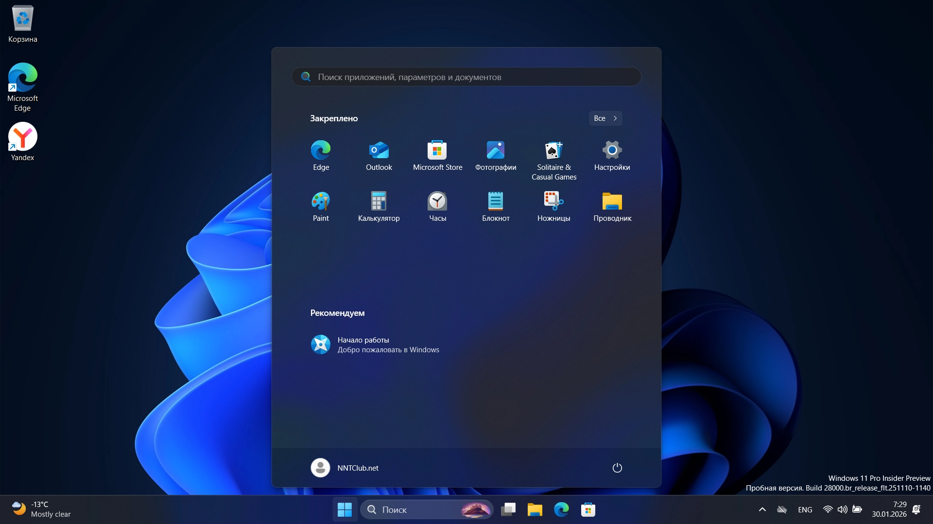 Новейший образ операционной системы Windows 11 26H1 с обновлениями от 29 Января 2026 года распространяемые на канале Canary. В систему не вносилось никаких изменений, все службы и приложения работают по умолчанию. Использован универсальный загрузчик для обхода ограничений по железу и полуавтоматической установкой (только имя пользователя и раздел для установки).