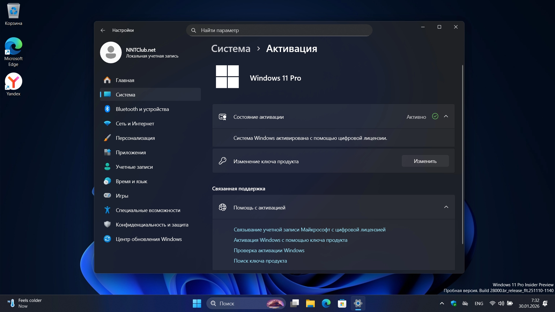 • система активируется автоматически (HWID - цифровая лицензия) при подключении к интернету.