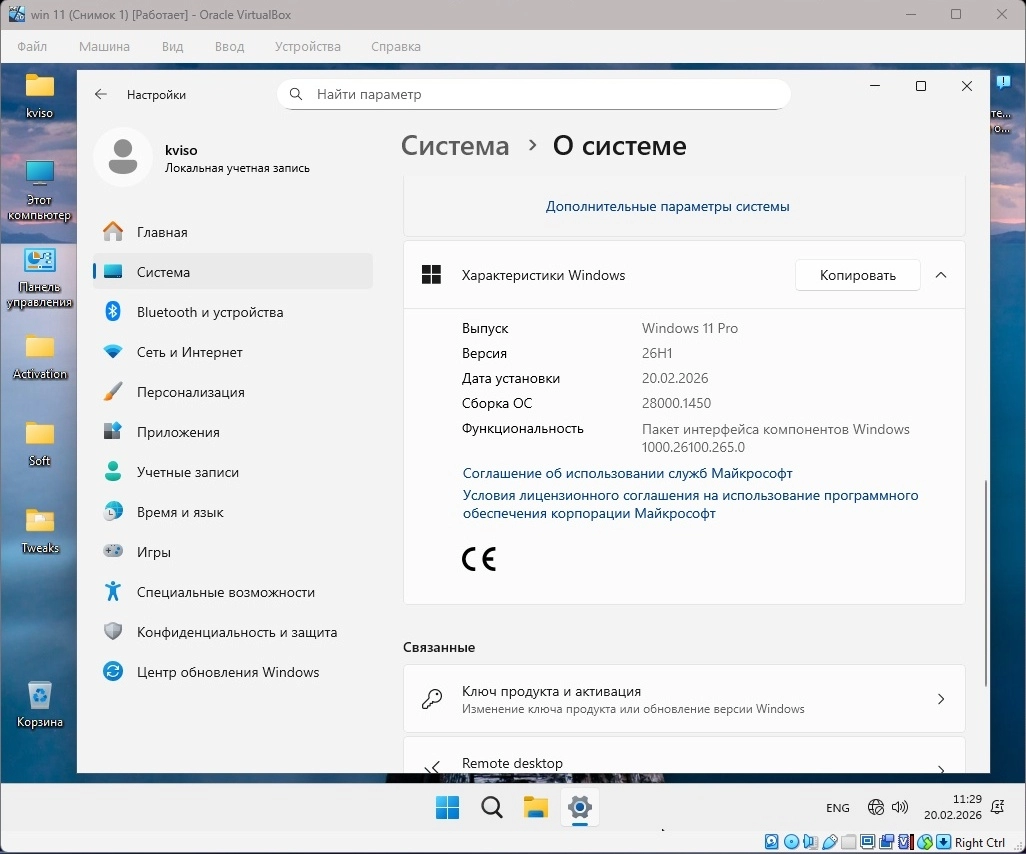 Сборка сделана на основе оригинального образа от MSDN: 26H1 (build 28000.1450). Включен стандартный просмотр фото, применены необходимые настройки для повышения быстродействия и стабильности системы.