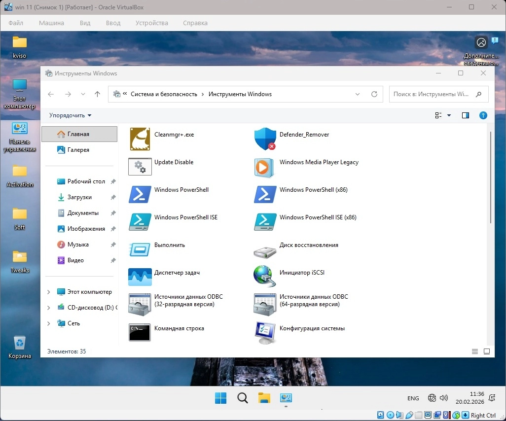 • Добавлены программы, Cleanmgr+, Update Disable, Defender Remover; значки для запуска в “Инструменты Windows”.