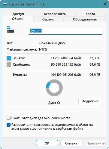 • Отключено зарезервированное хранилище