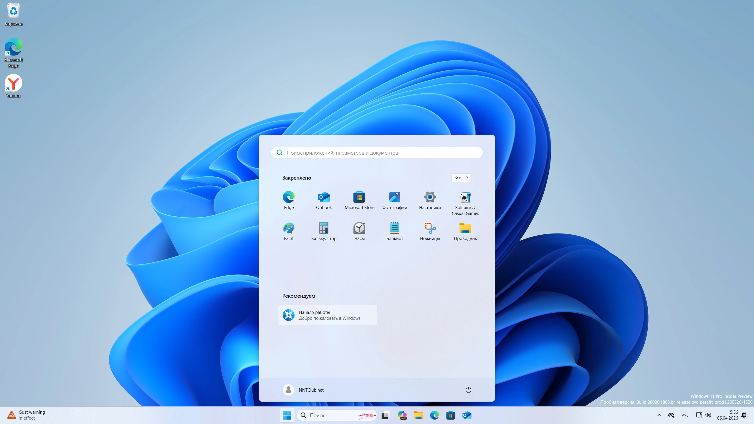 Образ операционной системы Windows 11 26H1, с обновлениями от 3 апреля 2026 года распространяемыми на канале Canary. Сборка предназначена для ознакомления с новыми функциями Windows 11, которые в будущем войдут в стабильные версии системы. В образ не вносилось никаких изменений, все службы и приложения работают по умолчанию. Использован универсальный загрузчик для обхода ограничений по железу и полуавтоматической установкой (только имя пользователя и раздел для установки).
