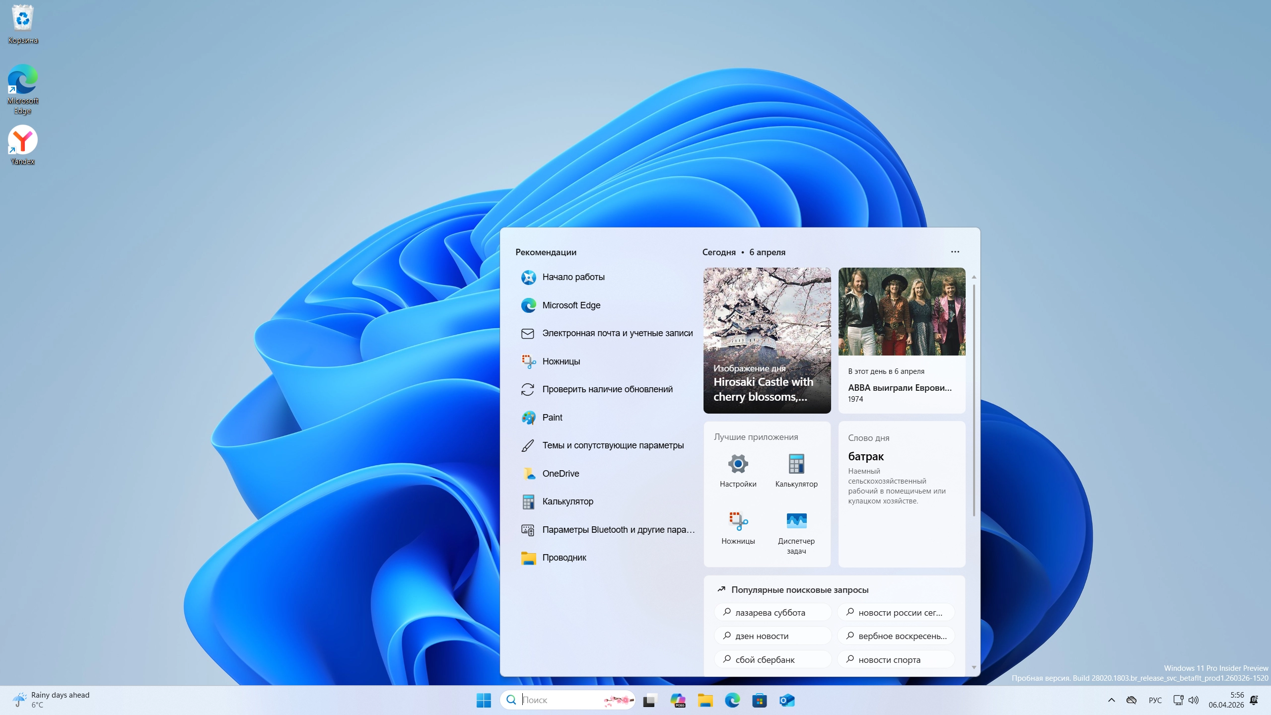 Windows 11 Pro 26H1 Build 28020.1803 Canary торрент, изменения: