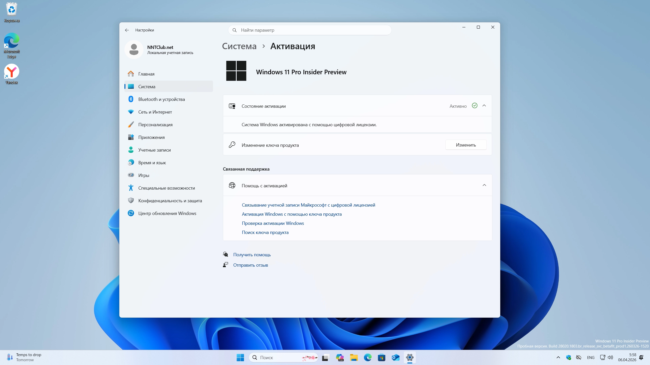 • система активируется автоматически (HWID - цифровая лицензия) при подключении к интернету.