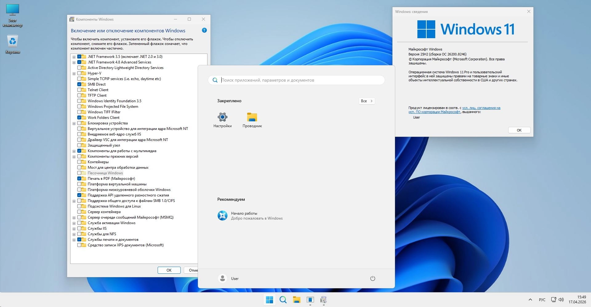 Windows 11 Pro 25Н2 (build 26200.8246) by ivandubskoj 17.04.2026 торрент, изменения: