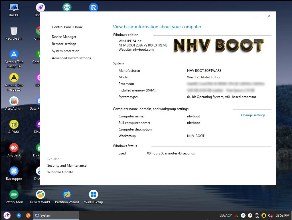 • NHV BOOT 2026 с очень быстрой скоростью загрузки. WinPE работает очень стабильно. Гарантированная обработка.