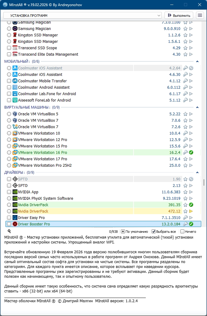 Торрент MInstAll v.19.02.2026 By Andreyonohov (Unpacked) подробно: