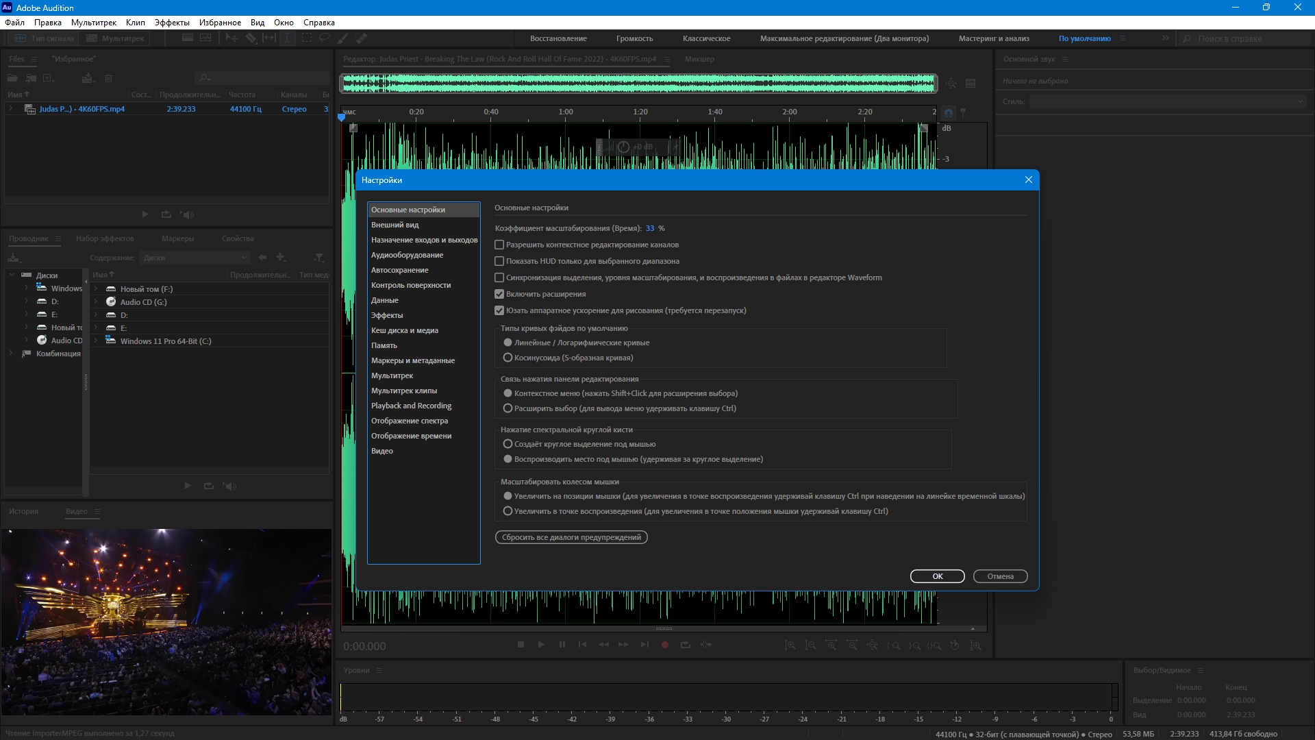 Создавать высококачественную аудио-продукцию - Adobe Audition поддерживает файлы с глубиной оцифровки до 32-бит и частотой дискретизации более 192 КГц, и запись на любые носители (включая магнитную пленку, CD, DVD или DVD-Audio диски). Вся обработка выполняется в 32-битном разрешении, что позволяет достичь высоко профессиональных результатов.