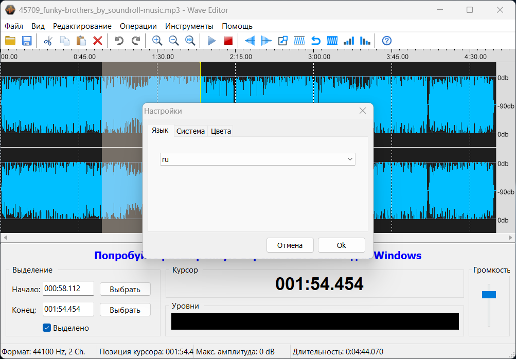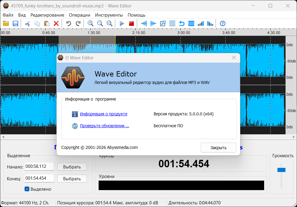 Редактор звука Wave Editor 5.0.0.0